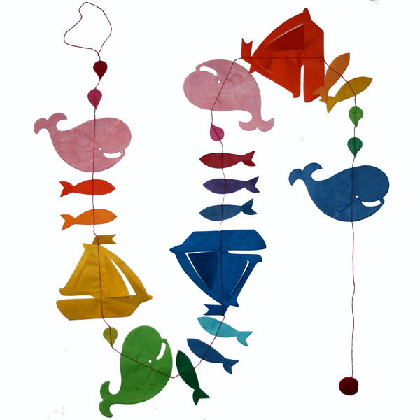 Guirlande Régate - verticale - couleurs unies - silhouettes en papier Lamali Lokta cousues en guirlande - taille : approx. 1;50m - fait main au Népal (assortiment)